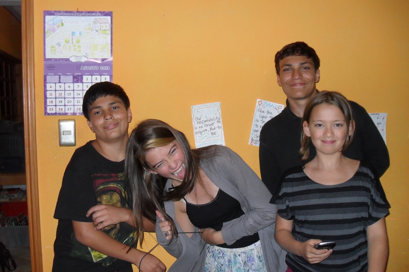 Marcos, Ava, Manuel, and Amanda goof around on our last night in Pana. |